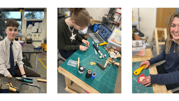 Mrs Cracknell, Head of Design explained, “This project is designed to widen the students’ experiences and skill sets. First of all, being put in a group or pair means you have to communicate, compromise, encourage and support each other through the process, which is often the set up expected in most workplaces or even at university. Furthermore, there are many aspects to cover, from the initial design stages, through to development and manufacture, so the students have to multi-task, and carefully plan their work loads. And finally, it gives each student a chance to get hands on and help each other to meet the final deadline. Towards the final days it will be likely that 3D students will need to work on graphic tasks and vice versa.”