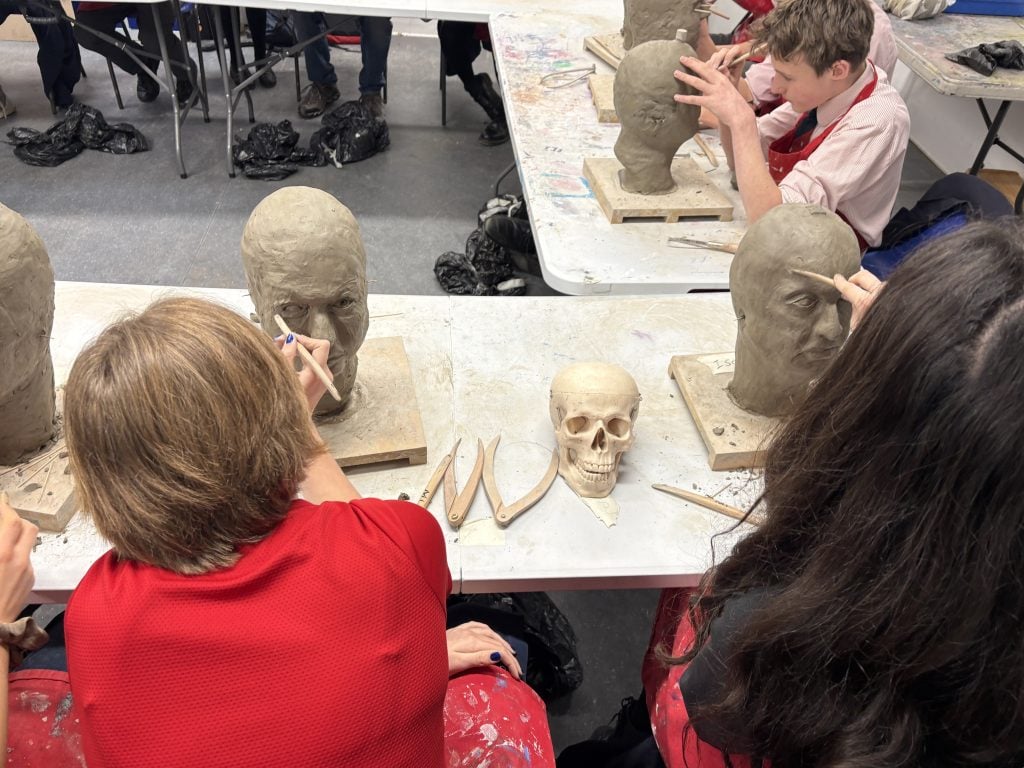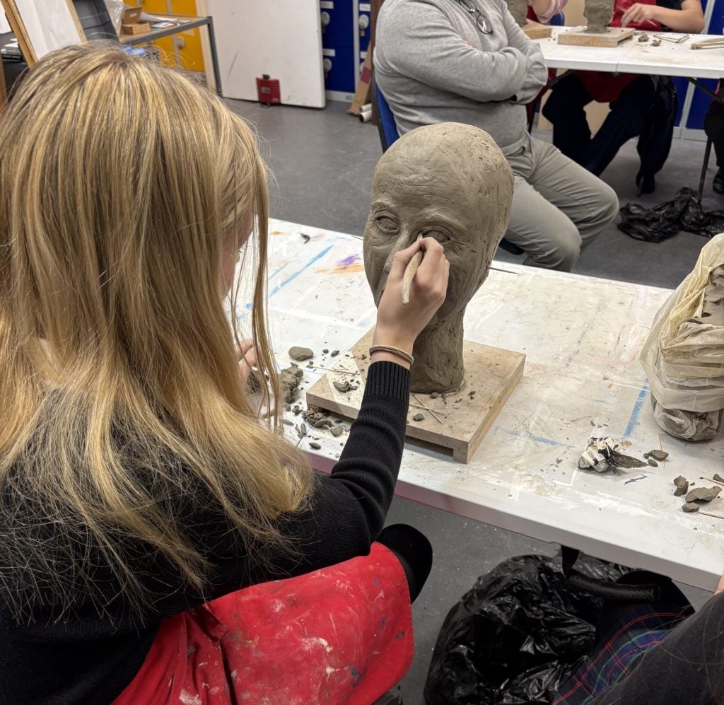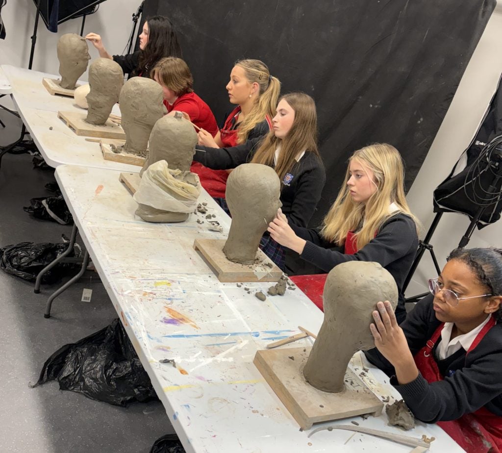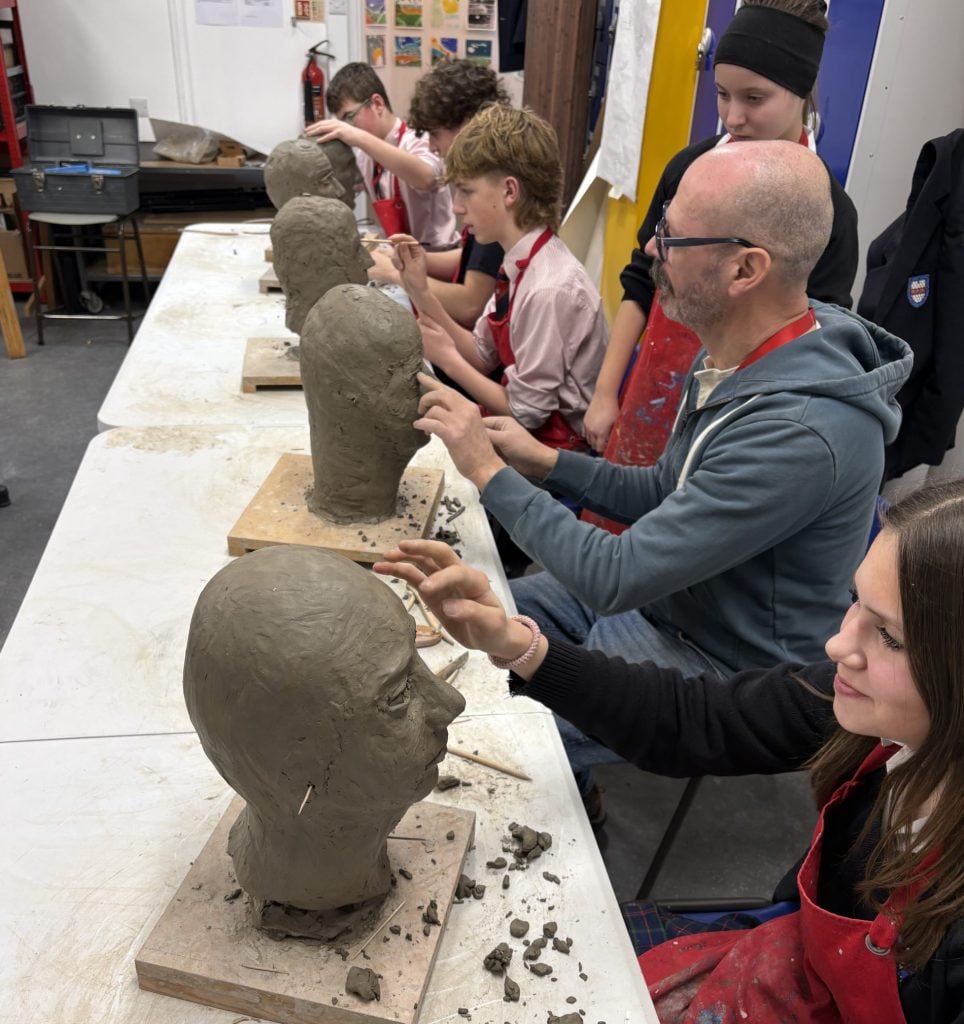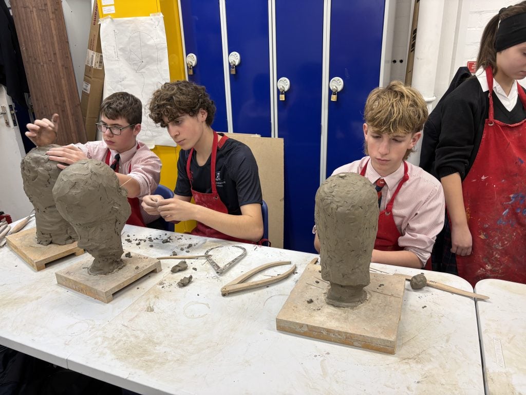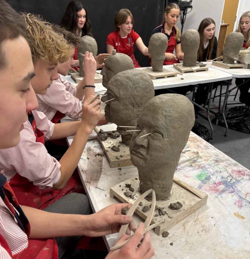 With Mr Holden modelling for the creation of clay heads from life, students created life-size pieces which will later be fired in the kiln. Using tools such as callipers, wire ended, loop, rake and ball tools, as well as sculpting knives, they all enjoyed creating their pieces with care and attention to detail. A classical approach to making, hugely reliant on observation and perseverance, it juxtaposes more contemporary forms of making, that our Art department also celebrates.