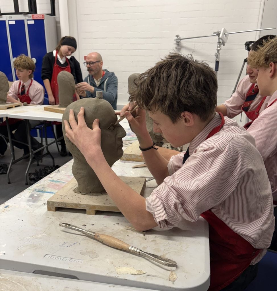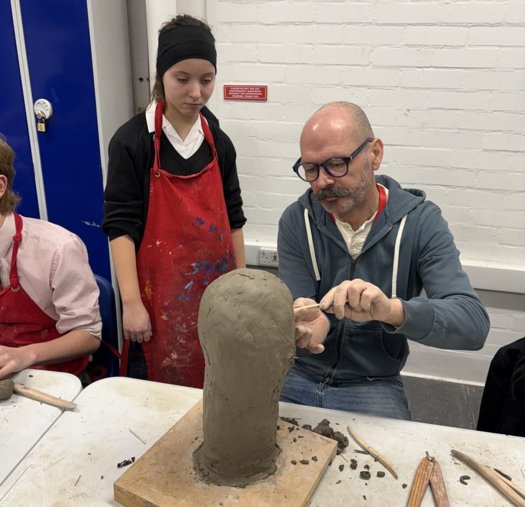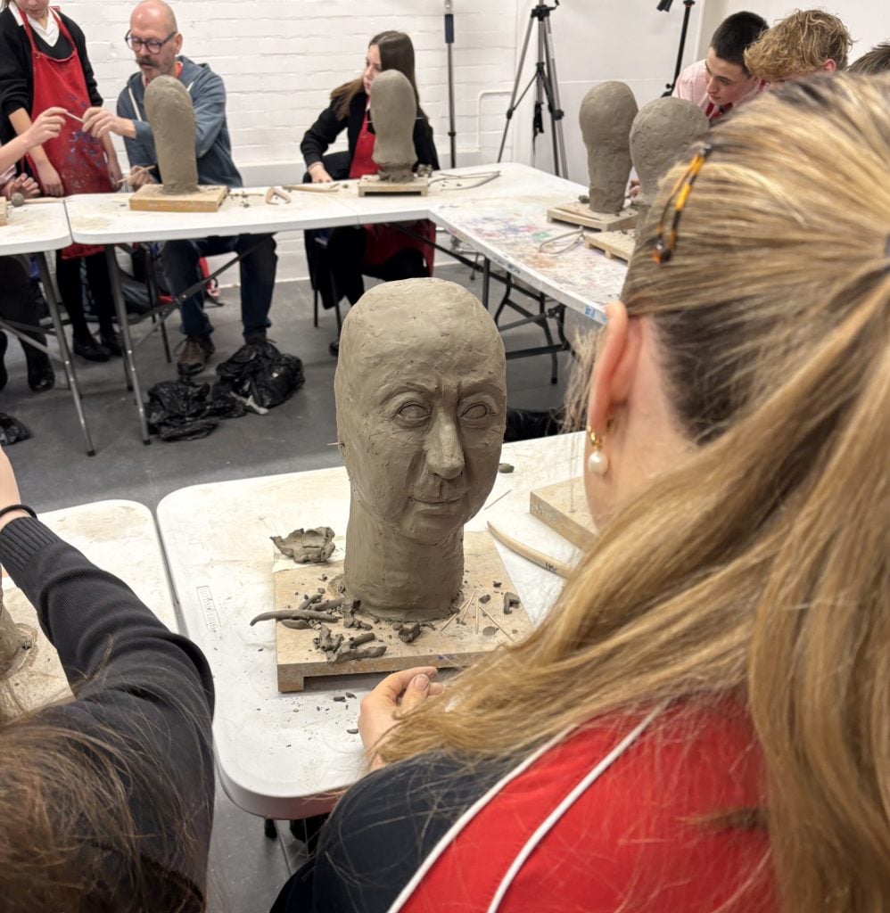 This week, our Year 7 to 10 Art Scholars took part in the second half of their enrichment sculpture class with Ian Wolter. An award winning artist and sculptor, Ian’s work includes pieces such as Safe Haven, a life size bronze sculpture of five Kindertransport refugee children walking down a gangplank which stands in Harwich. His talent and experience provided students with inspirations for their live sculpture class.