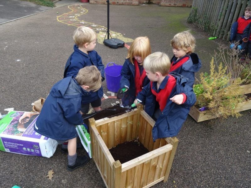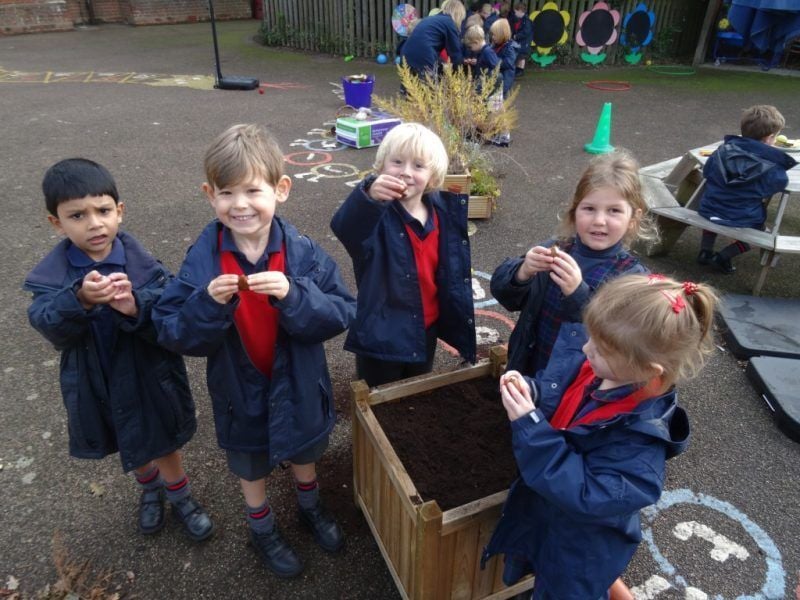 This week the Reception children have been learning about Autumn. At the beginning of the week they went on an Autumn Walk through the valley at the Senior School. With a partner, the children collected lots of different autumnal natural objects. They found nuts, leaves, twigs, pine cones, seeds and squirrels! When the children returned to the classroom they used the objects they had found in their art work. Today the children were planting tulip bulbs in the outside area, and they will now have to wait until spring to see the flowers grow!