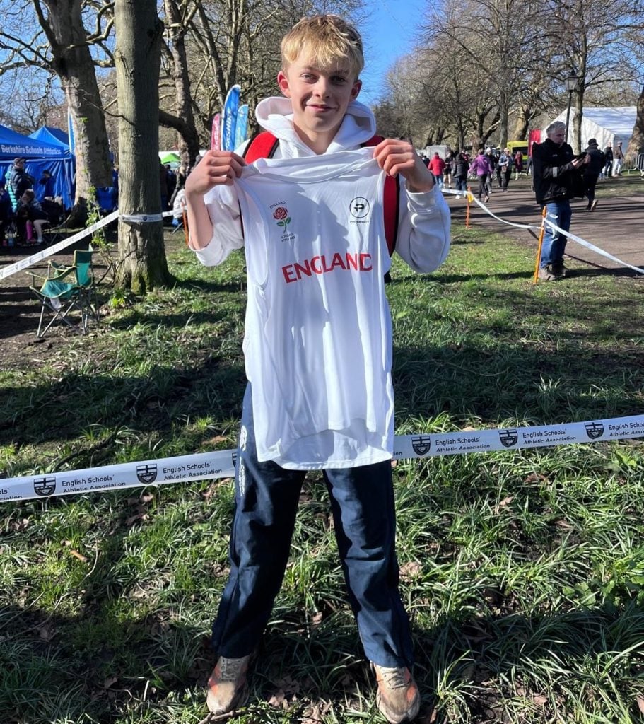 The Junior Boys were next up, where Year 9’s Dex battled it out for a top 10 finish. To put the actual battle in context, the 7th, 8th, and 9th positions crossed the line clocking the same gun time, one dipping in front of the other. Dex earned a superb 7th position which qualifies him to run for England in the SIAB Home International in Bangor, Wales, this Saturday. This is not only an outstanding achievement but also makes Dex only the third Woodbridge School athlete to achieve this representation and the only Suffolk athlete of any age now in the England team. The team, which included five Suffolk Junior Boys in the top 50 overall, also secured a Silver national team medal.
