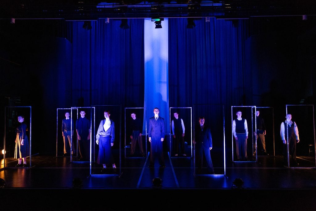 The Sixth Form production of Steven Berkoff’s The Trial at Seckford Theatre this week, captured audiences from the very start with a striking opening scene to a well-known Faithless anthem. It was a sign of what was to come as our audience members were taken on a suffocating journey through the dark humour and absurdity of Kafka’s world.