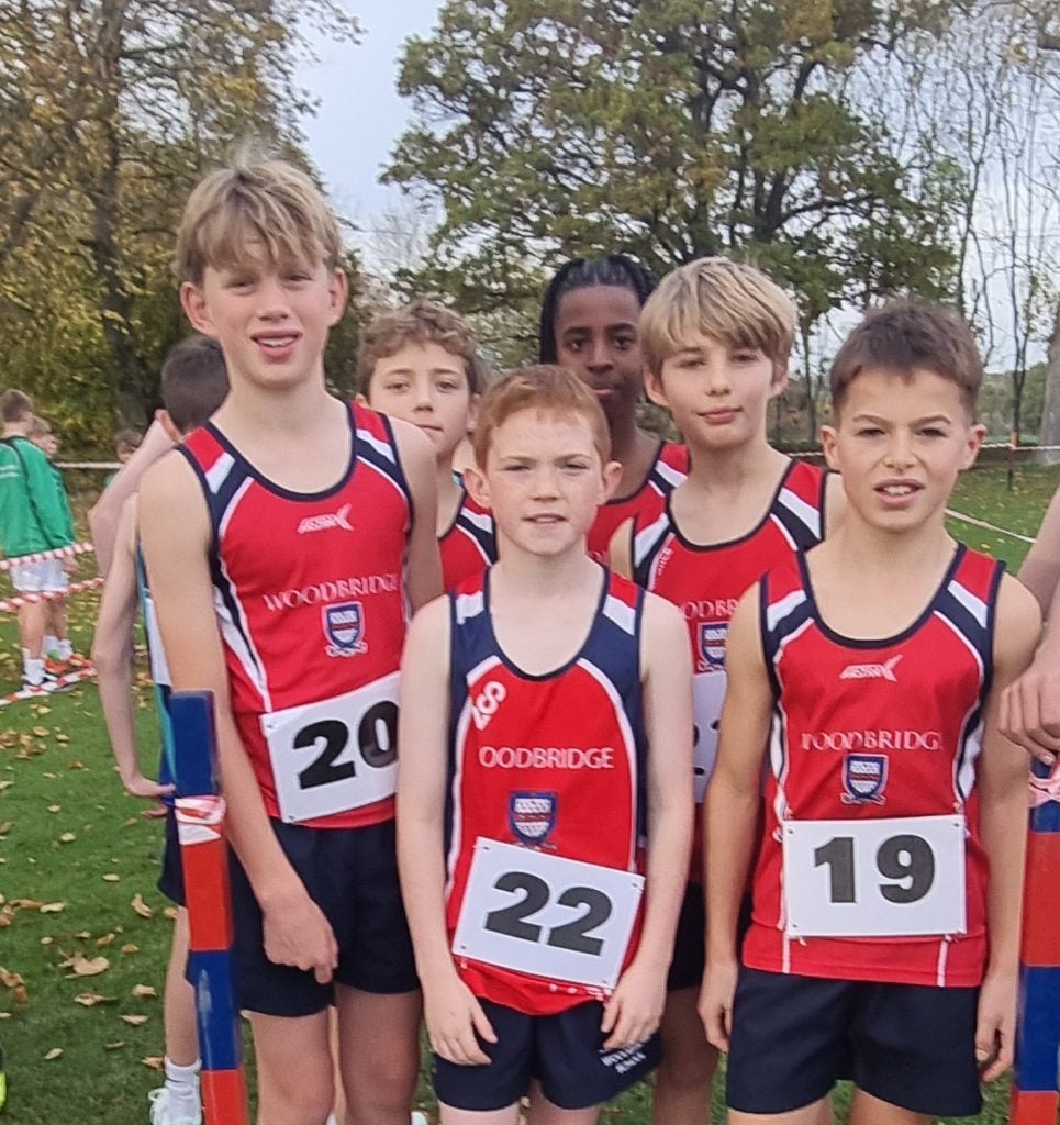 Our Junior Boys then followed, chasing a fast pack of runners from the strong county of Essex. Year 8’s Ollie finished first for Woodbridge in 9th place, followed closely by his training partner Year 8’s Archie, who came in 11th. A top eleven finish for the two, also a great result. The rest also gave it their all for their team gaining another 7th place overall.