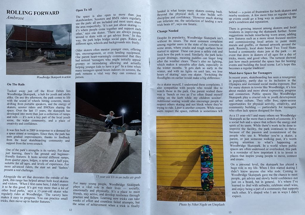 Year 11’s Ambrose has been celebrating having his writing published in the Woodbridge and Melton Society newsletter. Sharing details of his skating experiences in Woodbridge, it’s been a fantastic first journalistic enterprise and we’re certain Ambrose will go on to celebrate more.