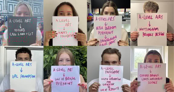 We are so proud of all our Art alumni, and have been privileged to see and help them grow as creatives; knowing that they will make a real contribution to the universities, careers and fields that they go on to.