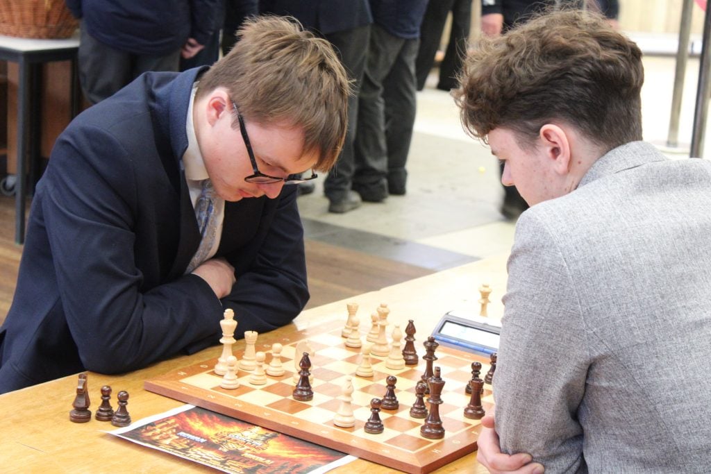 In the penultimate game, yet another complicated and rich in strategic decisions, Samisch variation in the King’s Indian Defence appeared on the board. This time, Rowan gained material advantage, kept it and pushed Nikolai to losing on time. The result: 3-2 in Rowan’s favour.